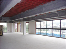 事務所が4階へ引っ越した後、進められている1〜3階テナント内装工事の様子。完成に向けて、現在も工事は着々と進行しています。