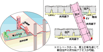 コストメリット 余剰住戸の売却益の一部を、入居者用新築住戸、リニューアル工事費用に充当することにより、総建て替えのケースに比べて、自己負担が軽減される。また、長期にわたる仮転居にかかる経費も大幅に削減できる。